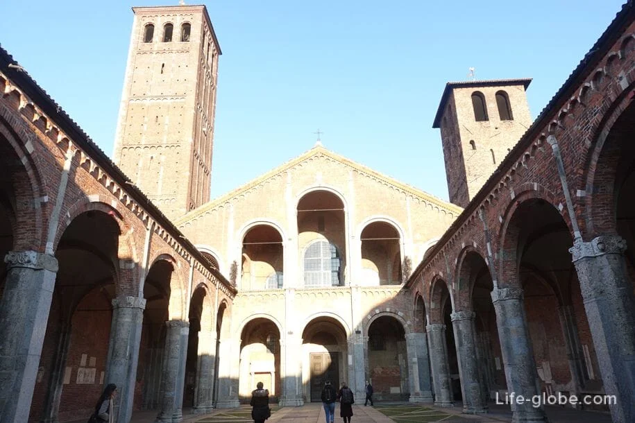 Что еще посмотреть в Милане на второй день? Посетите храм 4 столетия — Амвросианскую базилику (Basilica di Sant’Ambrogio). Он расположен на площади св. Амвросия (Piazza Sant’Ambrogio). Здесь в саркофагах с прозрачным стеклом покоятся мощи мучеников раннего христианского периода и покровителя города — святого Амвросия. В храме функционирует музей и небольшая картинная галерея, рядом с базиликой — музей технологий Леонардо да Винчи. Доехать можно по зеленой ветке метро до станции Sant’Ambrogio.