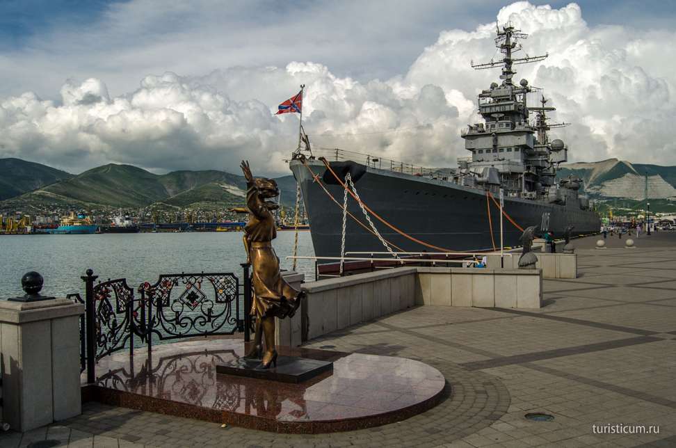 Конечно центральной композицией набережной, да и всего города Новороссийска является крейсер «Михаил Кутузов», названный так в честь великого русского полководца Михаила Илларионовича Кутузова. Крейсер уже не молод, в 2016 году он отпраздновал свои 65 день рождения. За годы службы крейсер совершил немало боевых выходов и участвовал в спасательной операции на линкоре «Новороссийск». Сейчас крейсер «Михаил Кутузов» является музеем, где все желающие могут познакомиться с могучим крейсером поближе. Экскурсия на корабль-музей «Михаил Кутузов» стоит 200 рублей, но для посещения должна набраться группа минимум из 10 человек, поэтому для посещения рекомендуется выходной день.