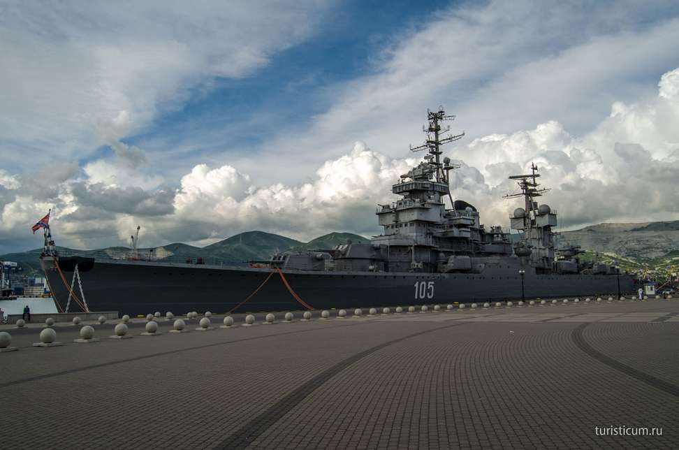 - Крейсер «Михаил Кутузов» — корабль-музей на вечной стоянке в морском порту Новороссийска. В стоимость входного билета включено экскурсионное обслуживание. Вас проведут по палубам и разрешат заглянуть в чрево крейсера. Рекомендуется всем любителям истории, морского флота и просто для общего развития. Детям тоже будет интересно. Подробная статья про крейсер Михаил Кутузов.