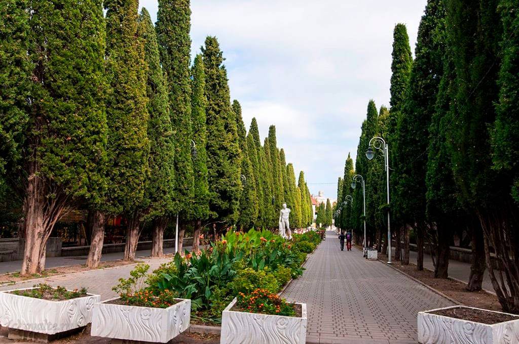 Кипарисовая аллея – красивая, ухоженная прогулочная зона, протянувшаяся почти на километр и выходящая к набережной. Изначально аллея должна была быть Каштановой, но по причуде властей вместо традиционных каштанов высадили экзотические кипарисы. Капризные деревья прекрасно прижились на крымском побережье и придают особый колорит аллее.