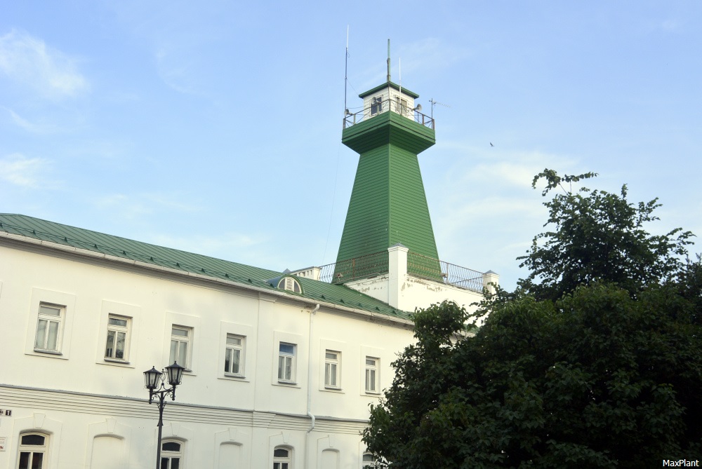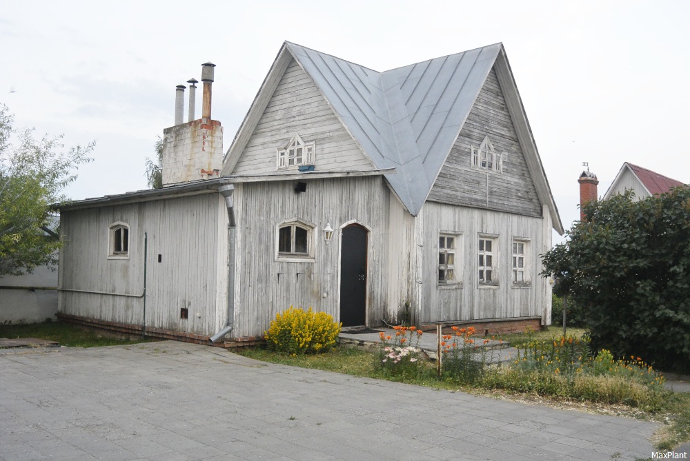 По левую сторону встретится непременный атрибут старинного города — пожарная каланча (1890 г.). За ней — вот что значит жить по соседству с «нужными людьми»! — памятник архитектуры, деревянный дом XVIII-XIX века.