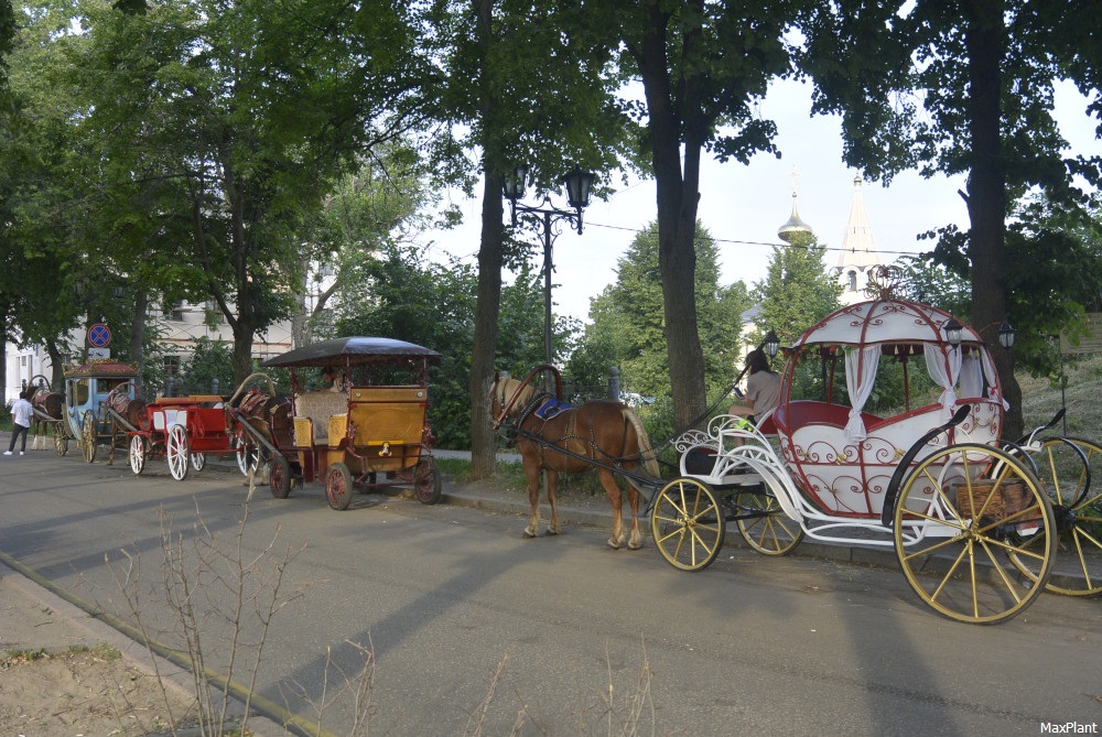 Катание на лошади в упряжке — популярное развлечение туристов в Суздале.