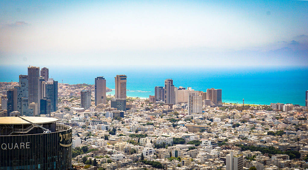 Скрученное здание Азриэли Сарона — самое высокое в Израиле. Но нам нужен комплекс из трёх башен, Азриэли Центр. На 49-м этаже круглой башни находится смотровая площадка, с которой можно увидеть весь Тель-Авив, пригороды и море. Вход на неё — 22 шекеля (6$ на июль 2022).
