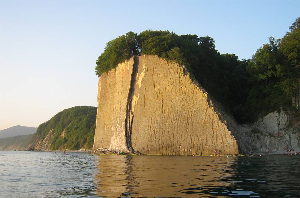 4. Скала Киселева – еще одна ландшафтная достопримечательность Туапсе, величественный символ города, запечатленный в полотнах известного художника Киселева. Отвесный обрыв высотой почти 50 метров овеян древними адыгейскими сказаниями о несчастных влюбленных, бросившихся в море с его вершины.