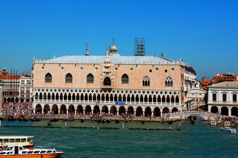 Дворец дожей на протяжении столетий был и остается визитной карточкой Венеции. Ведь именно это здание открывалось взорам приехавших сюда по морю. Здесь жили правители Венеции, заседал Большой совет, Сенат и Верховный суд. С балкона, выходящего из зала Большого совета на залив дож лично приветствовал прибывавших в Венецию гостей.