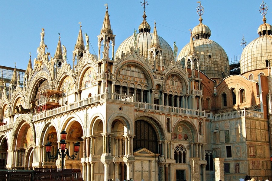 Главный собор Венеции, отстроенный в XI веке и ранее служивший придворной церковью дожей. Церковь построена в византийском стиле и имеет форму греческого креста, а ее интерьер отличают богатые украшения в виде мозаики и мрамора. Паломники посещают базилику, чтобы поклониться мощам Святого Марка, а любители искусства – чтобы увидеть шедевры, привезенные из Константинополя еще в средневековье.