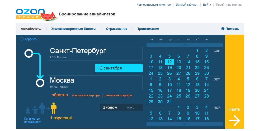 Озон травел – сервис для покупки авиабилетов