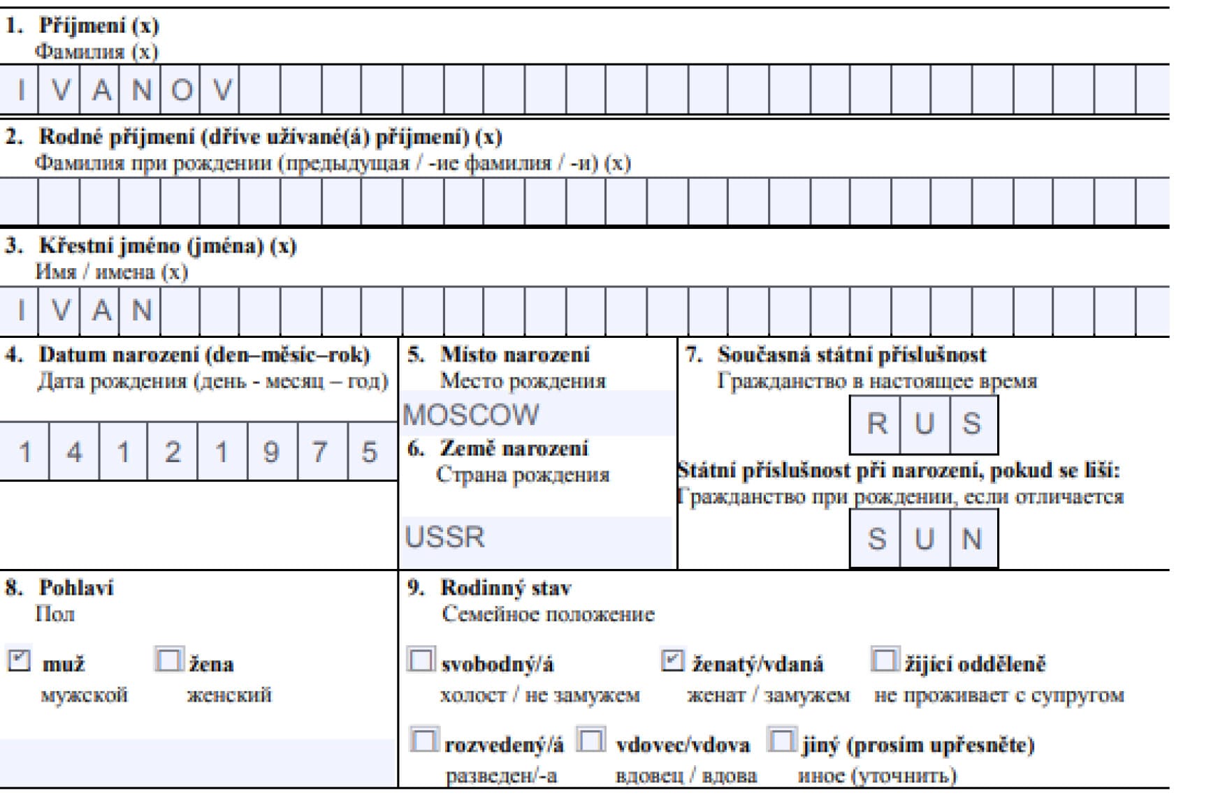 Шаблоны для всех видов анкет на въезд в Чешскую Республику заполняются по единому образцу.