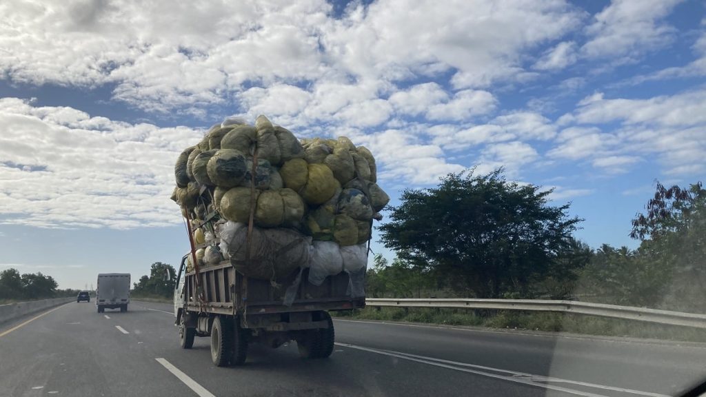Это стандартная картина на дорогах страны. Главное близко не подъезжать, еще выпадет тюк на вас.
