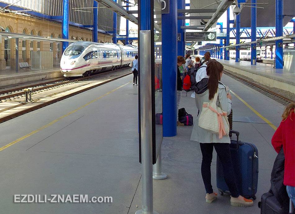 Туристы ждут поезд AVE на вокзале Сарагосы