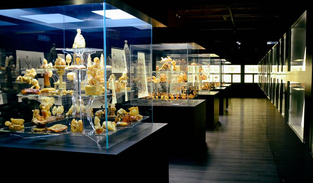 В «Янтарной палате» — интерактивная выставка, рассказывающая об истории добычи янтаря, его свойствах, происхождении, видах. Например, этот камень бывает не только желтого, оранжевого и коричневого цветов, но даже синего и зеленого. Правда, он редкий и водится в Африке. Здесь же находится работы янтарных мастеров, самородки и инклюзы (янтари с доисторическими насекомыми внутри).