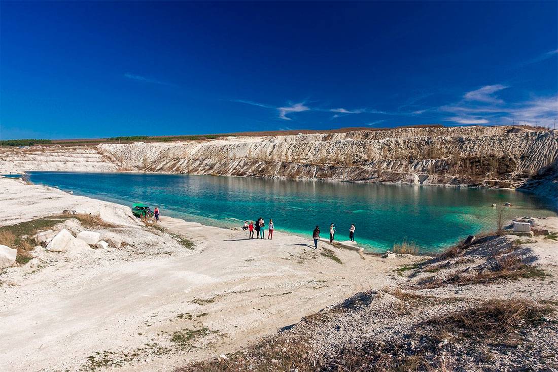 На самом деле раньше на территории озера находился большой карьер, где добывали известняк. После того как он был вырыт, рабочие обнаружили мощный источник. Во время активной добычи воду откачивали с помощью насосов. В 90-х работы были приостановлены, поэтому насосы тоже отключили. Буквально за несколько дней карьер наполнился водой, а вся рабочая техника осталась на его дне.