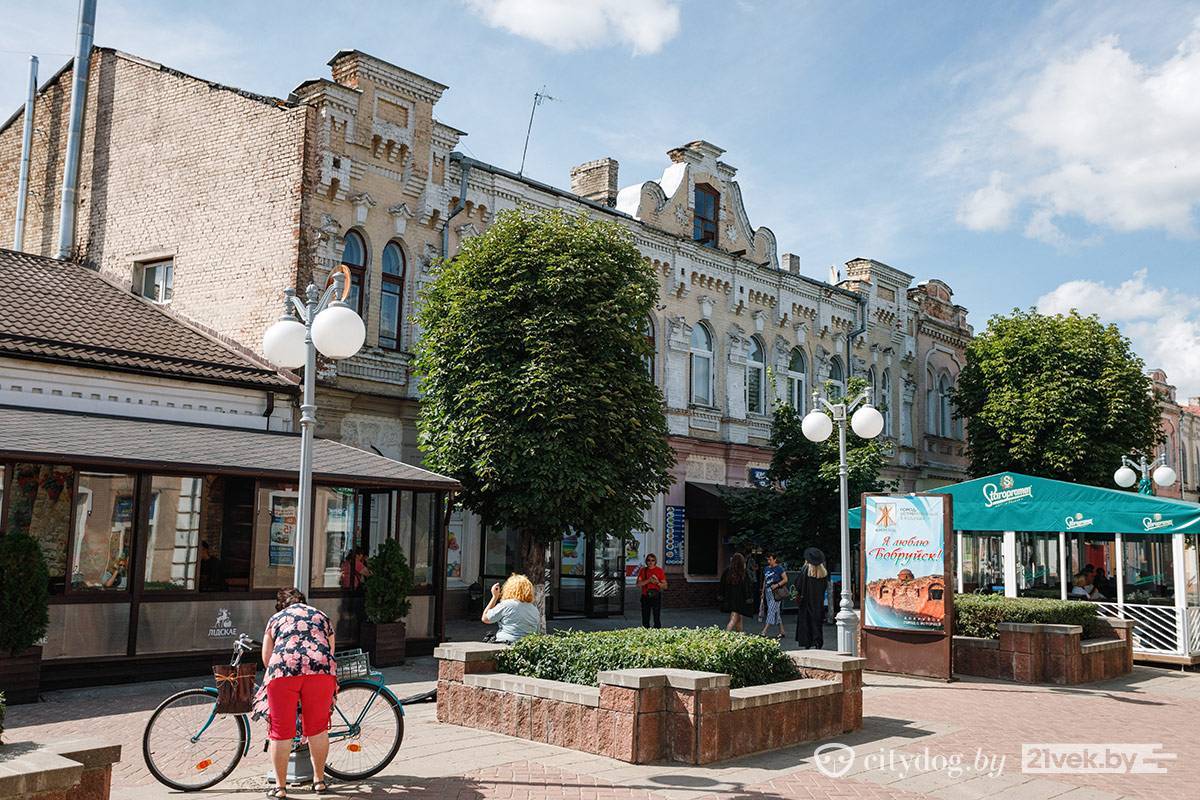 Это улица Социалистическая, единственная пешеходная в Бобруйске. Старые дома хаотично увешаны пестрыми, режущими глаз вывесками, но даже за ними видна их красота – да, пострадавшая от времени, но все еще красота.