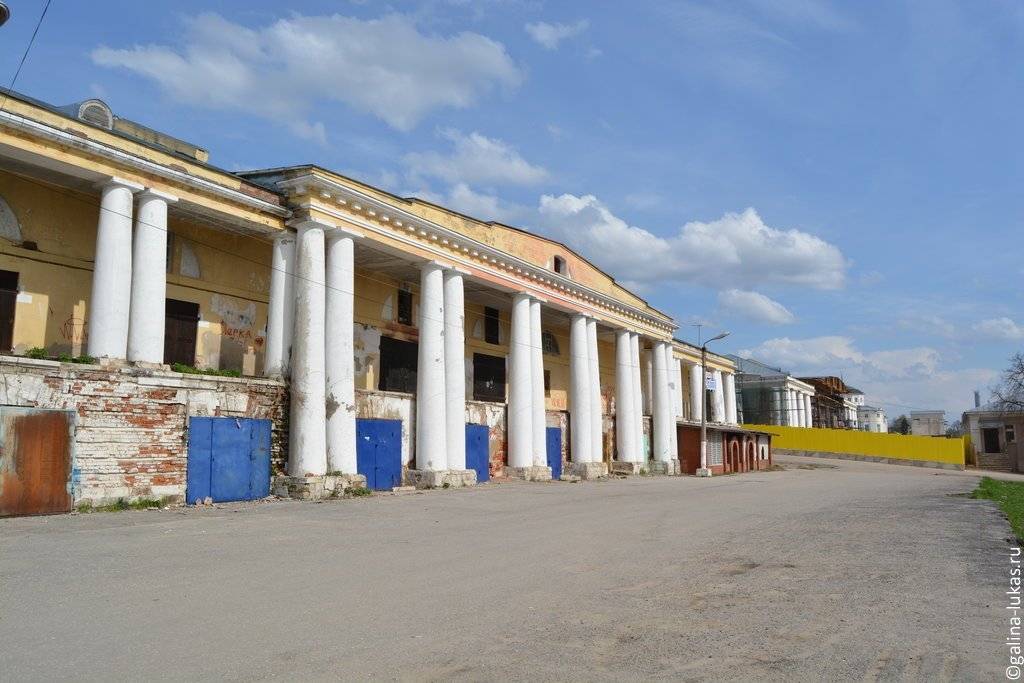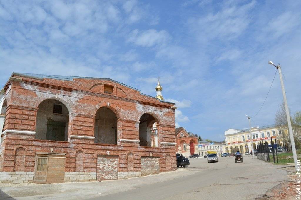 Если спуститься чуть ниже, то увидим Касимовские торговые ряды. Только находятся они так же в очень плачевном состоянии. Будем надеяться, что реставрация продолжится и принесёт свои плоды.