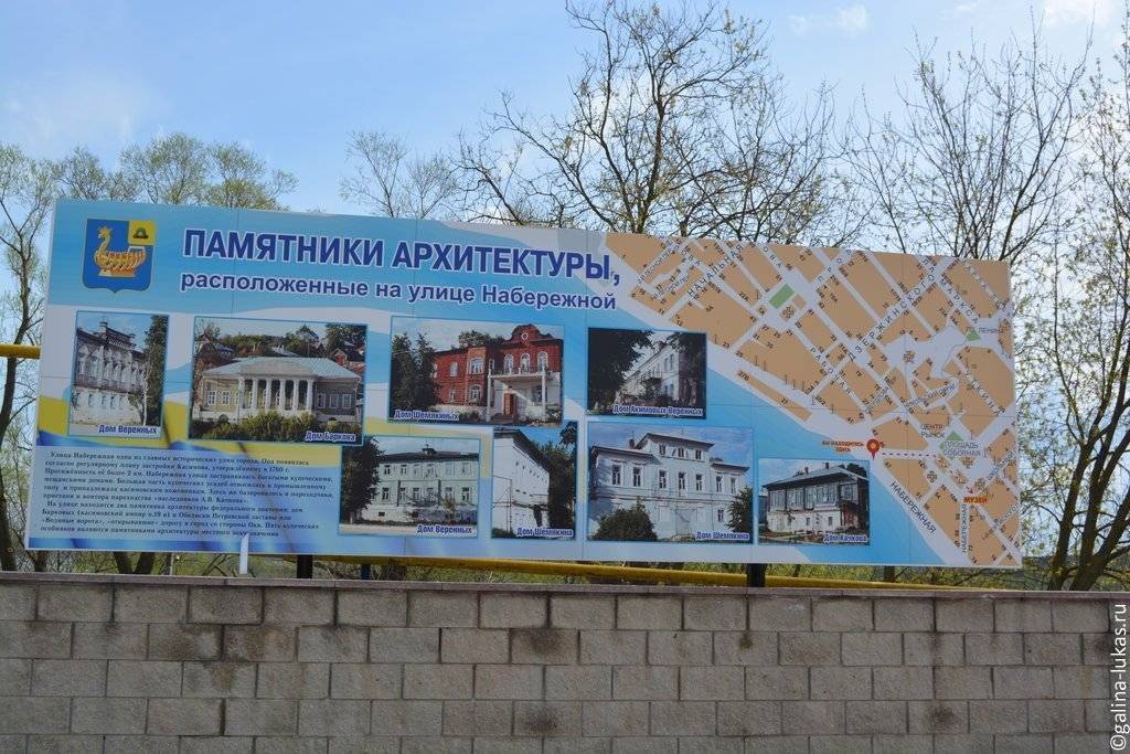 На Набережной города сохранилось несколько каменных особняков XIX – начала XX века, которые в наши дни имеют статус памятников архитектуры. Один из самых старых касимовских храмов находится в южной части города, на Октябрьской улице, 8А. Это пятиглавая Богоявленская церковь, построенная в 1700 году. По преданию, за ее алтарем похоронен знаменитый шут Петра I – Иван Балакирев. А на Окской улице возвышается Церковь Илии Пророка