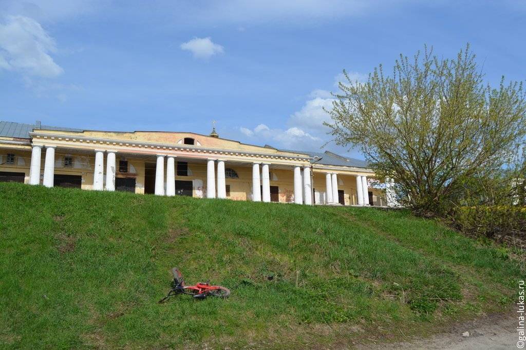 Если спуститься чуть ниже, то увидим Касимовские торговые ряды. Только находятся они так же в очень плачевном состоянии. Будем надеяться, что реставрация продолжится и принесёт свои плоды.