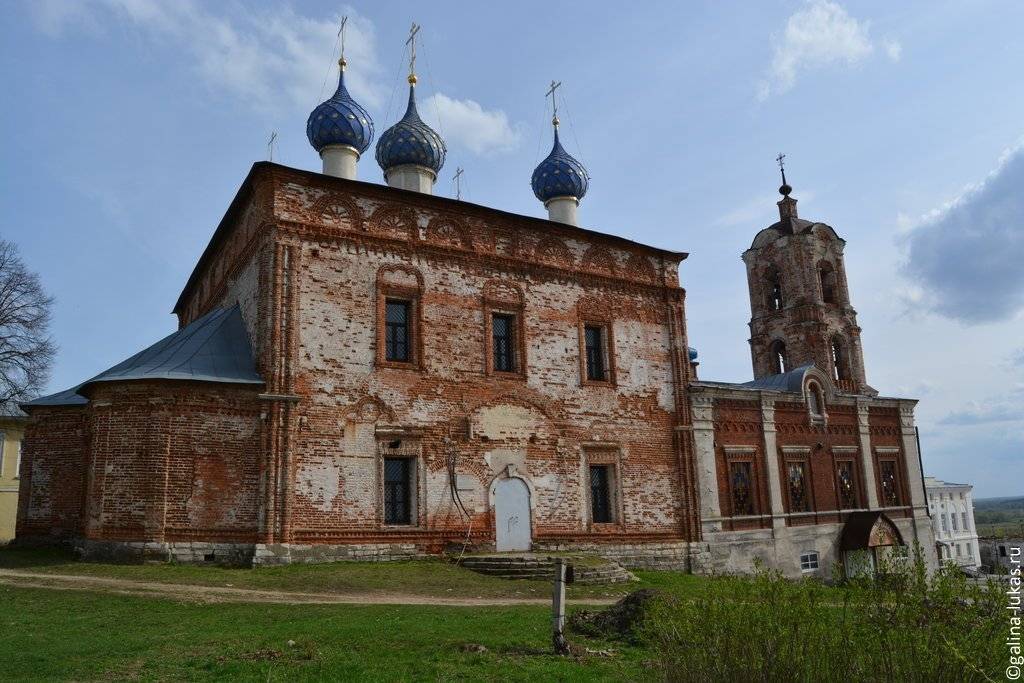 Храм этот построен в 1753 г., а в 1772 г. к нему была подстроена каменная восьмигранная колокольня. Троицкая церковь выстроена по архитектурному плану под названием «восьмерик на четверике». В 1938 г. ее закрыли, разместив тут сначала склад, а потом мастерскую по реставрационным работам. В 2002 г. храм вновь стал использоваться по своему религиозному назначению.
