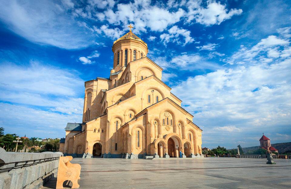 В центре возвышается современный Кафедральный собор Святой Троицы (Самеба), который по грандиозности можно сравнить с московским Христом Спасителем. Собор способен вместить 15 тыс. прихожан одновременно. Величественное многоярусное снаружи здание с круглой башенкой и золотым куполом – истинный шедевр архитектуры. Каждая улочка имеет свою древнюю достопримечательность в виде православного храма, мусульманской мечети или армянской церкви как свидетельство многонациональности города.