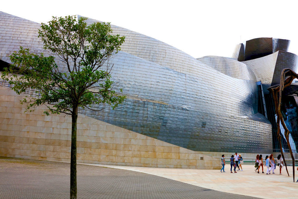 - музей Гуггенхайма из титановых пластин, стекла и водопадов. Его окружают необычные скульптуры (металлический паук и цветочный терьер), вход стоит 6-10 евро (дети проходят бесплатно);