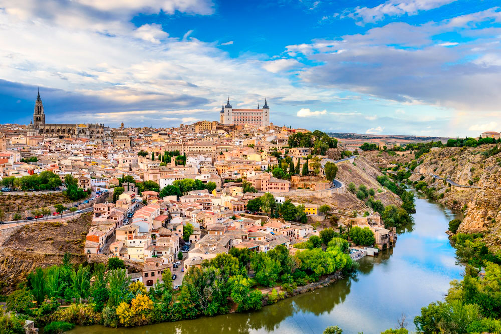 В месте изгиба реки Тахо в городе Толедо была возведена крепость. С юга шли обрывистые склоны, которые спускались к реке, а с севера испанцы построили мощные фортификационные сооружения. В итоге получился один из самых красивых замков Испании. В Алькасаре в свое время жили правители Кастилии. С потерей независимости, в этом месте была устроена тюрьма. Сегодня крепостных стен открывается прекрасная панорама на весь Толедо.