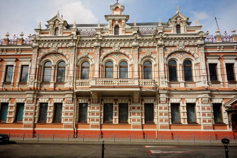 Здание Госбанка — построено в начале 20 века. На декорированном фасаде разместились и скульптуры, и кафельные панно, и множество мелких деталей. Внутри, как и век назад, банк.