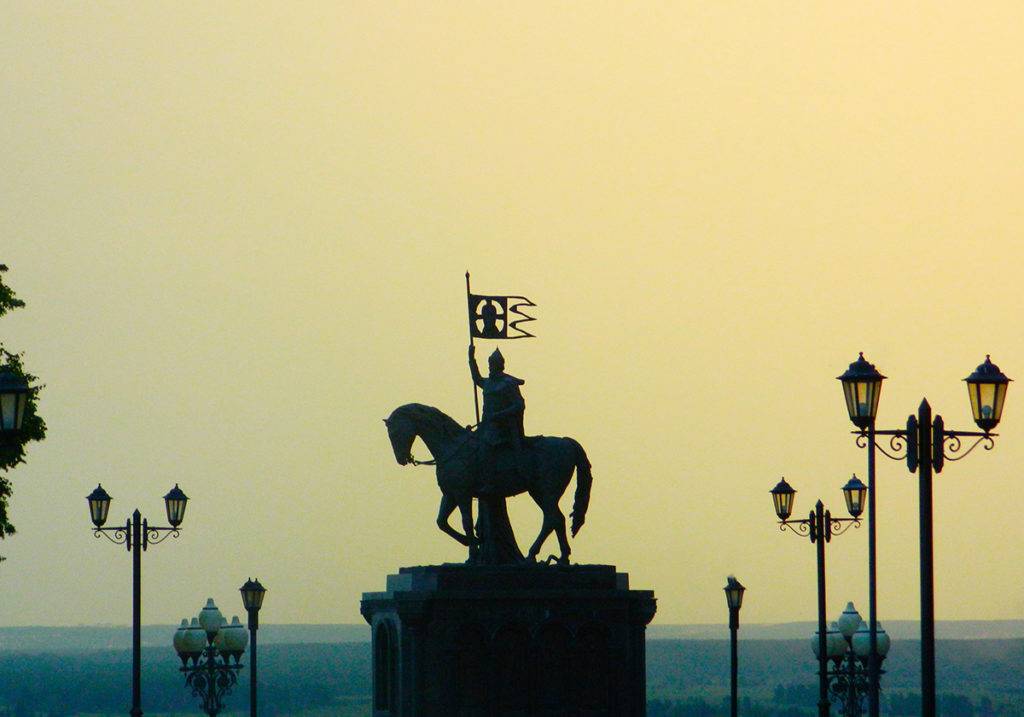 Монумент был установлен в 2007 году и приурочен к 850-летию переноса столицы из Киева во Владимир. Да, некогда наш город был столичным (окончательно потерял этот статус в 1389 году). Со смотровой открывается живописный вид на Клязьму, особенно красиво здесь поздно вечером, когда трасса подсвечена фонарями.