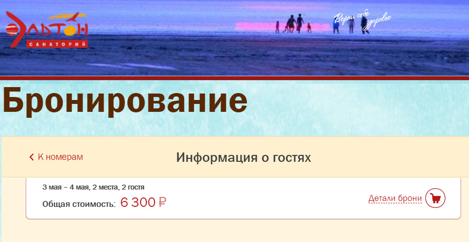 Цена за бронирование одного номера на оф. сайте санатория “Эльтон”