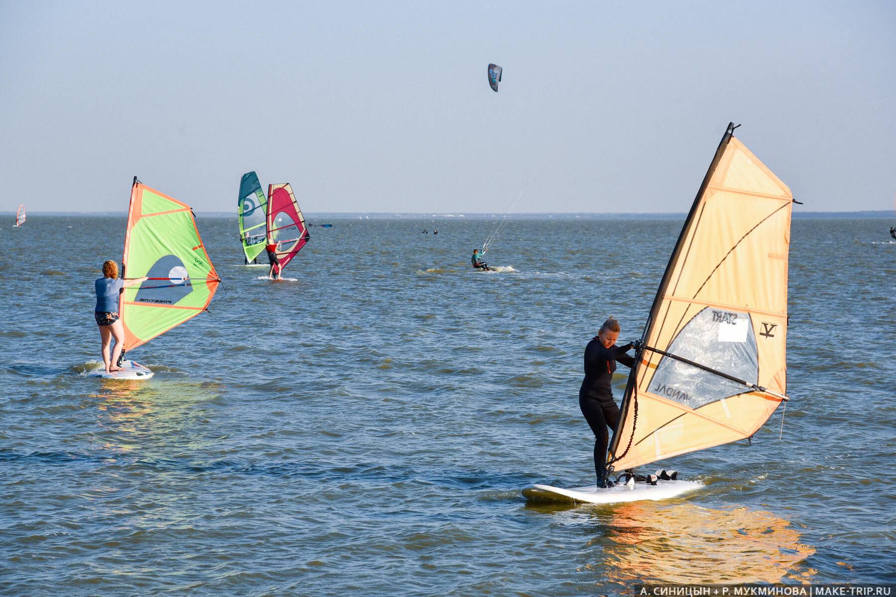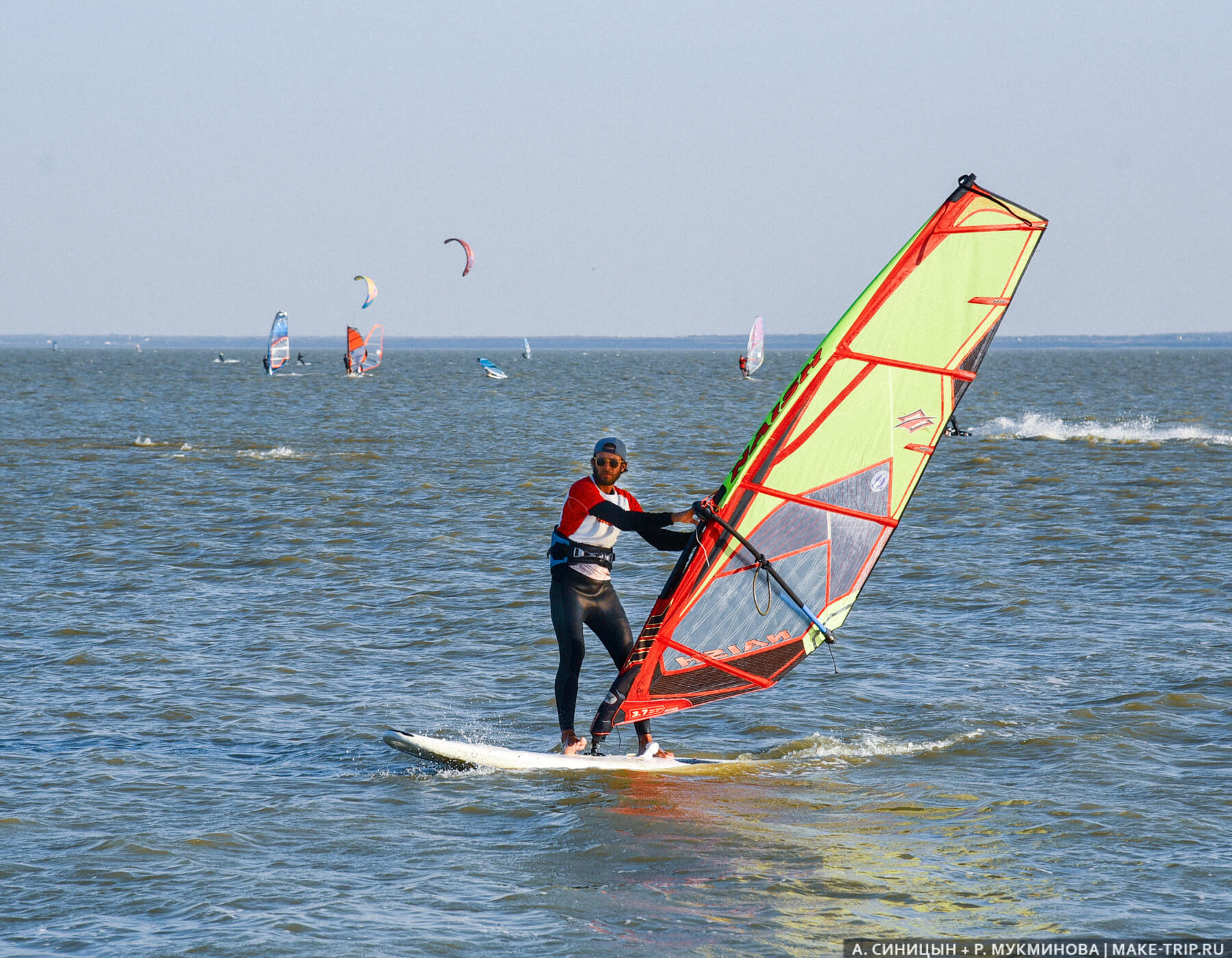 Виндсерфер практикуется на Молодежном пляже на Ейской косе.