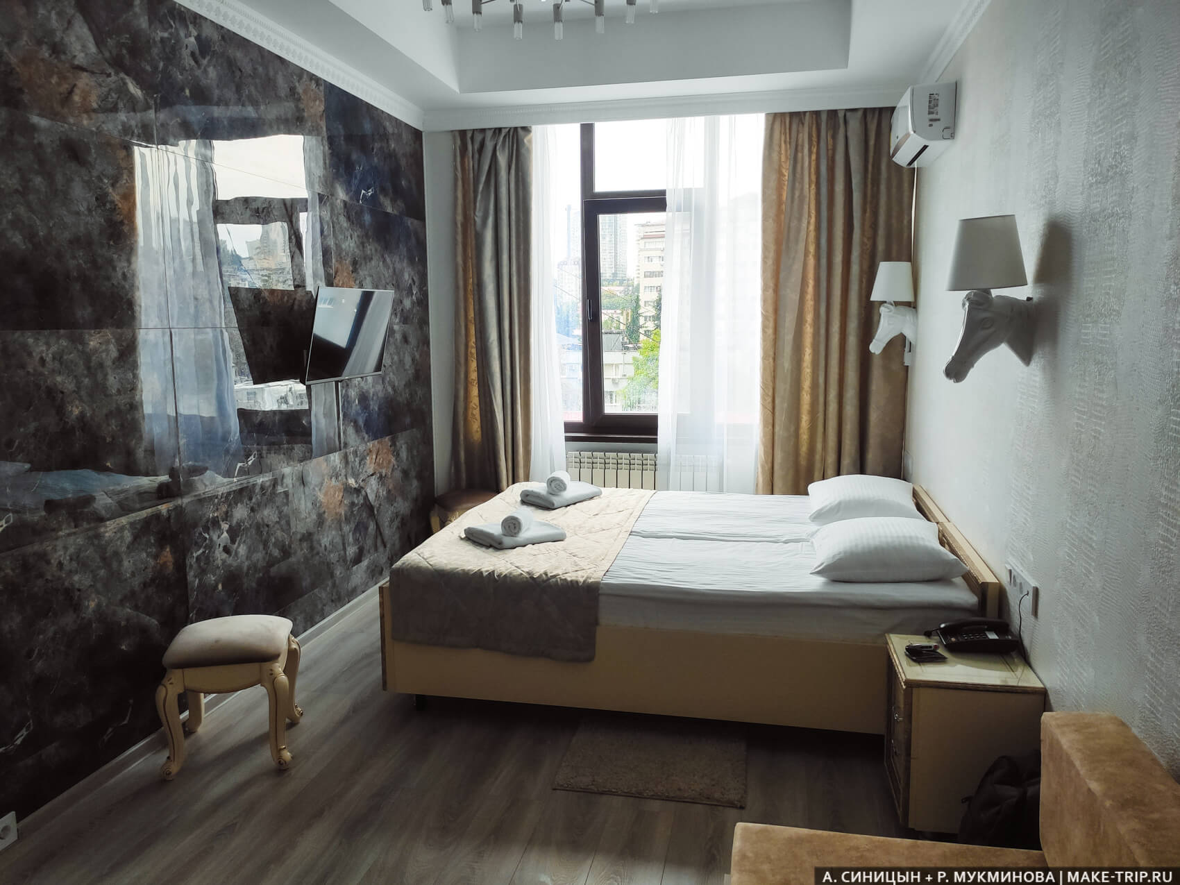 Сначала расскажу про отели. Номера в неплохих отелях 3* стоят минимум 3500 ₽ в сутки. Много хороших отзывов и высокий рейтинг у отелей 3* “АРТапарт”, Sanremo, Portofino, Dolphin Resort Hotel & Conference. Все они находятся на первой линии, поэтому много номеров с видом на море.