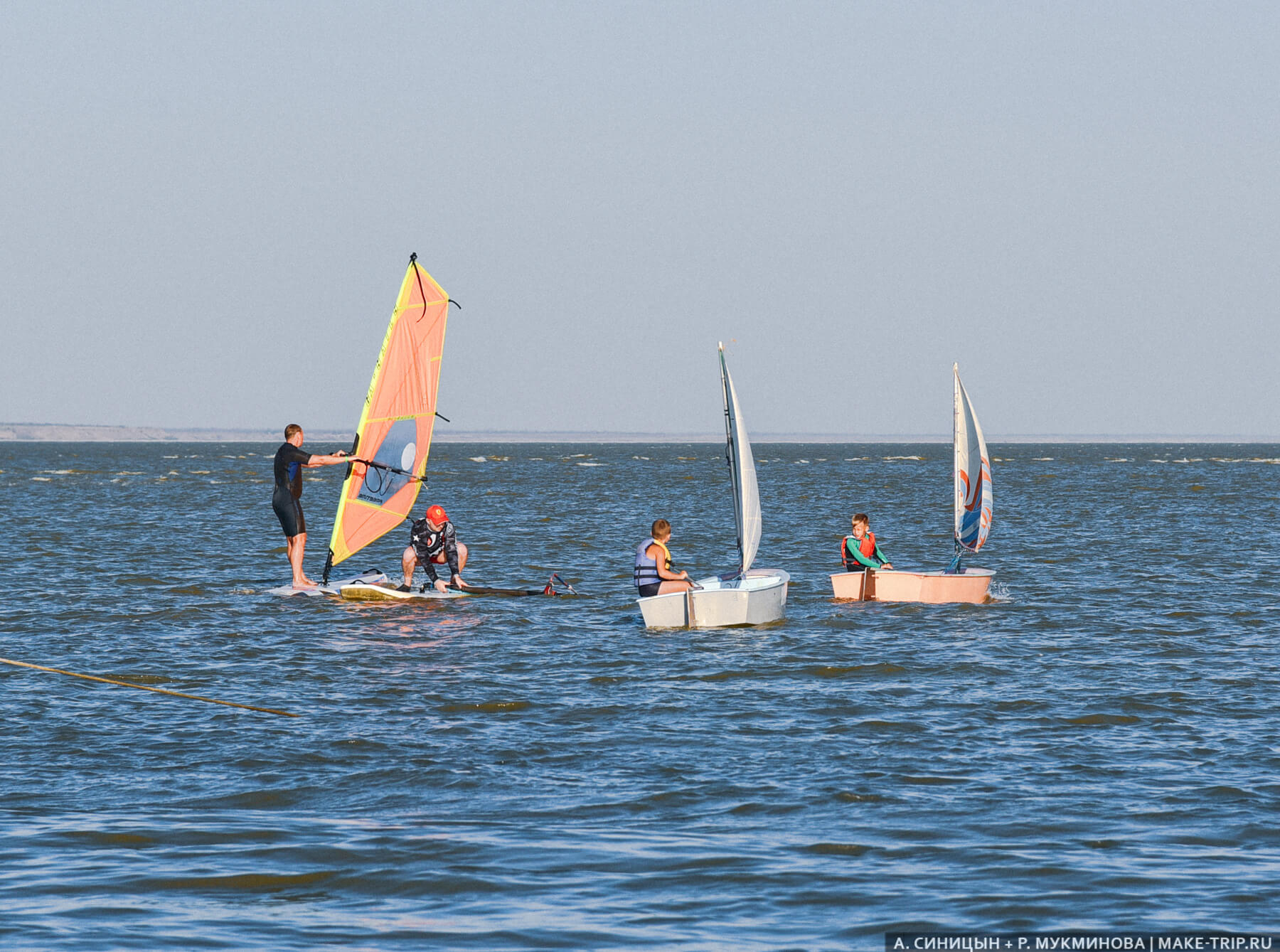 Также Ейск может предложить отдыхающим и другие виды водного спорта и развлечений. На фото, как я полагаю, дети проходят обучение яхтенному спорту.