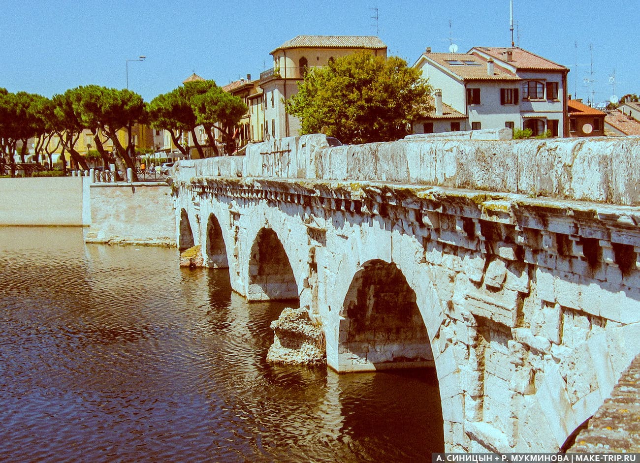 Мост Тиберия в Римини построен 2000 лет назад. Открыт не только для пешеходов, но и для транспорта.