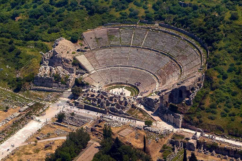 Римский театр – одно из самых внушительных сооружений древнего Эфеса. Первоначально театр был построен в 3 веке до нашей эры в период правления Лисимаха. В дальнейшем он был значительно расширен римлянами. Это крупнейшее сооружение такого рода на территории Анатолии, которое использовалось не только для пьес, но и для религиозных, политических и философских дискуссий.