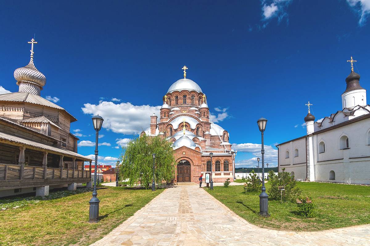 Почти все сооружения на Свияжске появились еще во времена правления Ивана Грозного. Первый монастырь на Острове-граде — Троице-Сергиевский. Изначально он состоял из церквей Троицкой и Сергиевской. На протяжении своей долгой истории монастырь ни раз переживал нелегкие времена, в настоящее время на его месте вы увидите Успенско-Богородицкий мужской монастырь. Его ансамбль представлен такими замечательными архитектурными памятниками, как Никольская церковь и собор Успения Богородицы. Первый из них представляет собой чудесное белокаменное здание, а внутри храма сохранилась уникальная фресковая живопись.