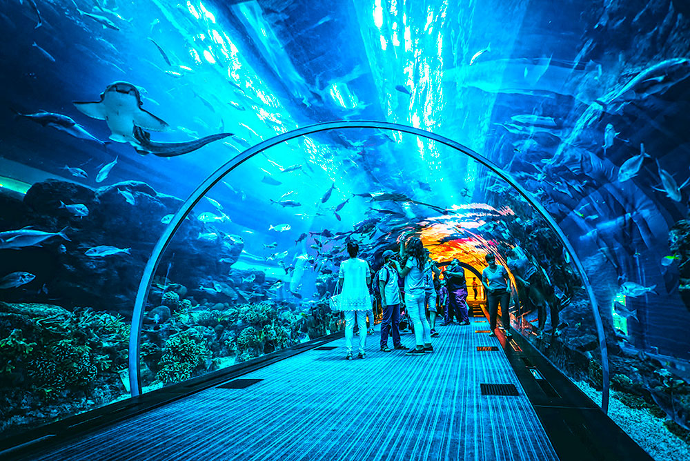Самый большой в мире аквариум, что подтверждает книга Рекордов Гиннесса, стал домом для тысяч обитателей морских глубин. Огромные прозрачные стеклянные стены позволяют посетителям любоваться на грациозных скатов, хищных мурен, быстрых акул и неторопливых черепах. Обязательно посмотрите кормежку хищников – зрелище завораживает. Под аквариумом проложен многометровый туннель.
