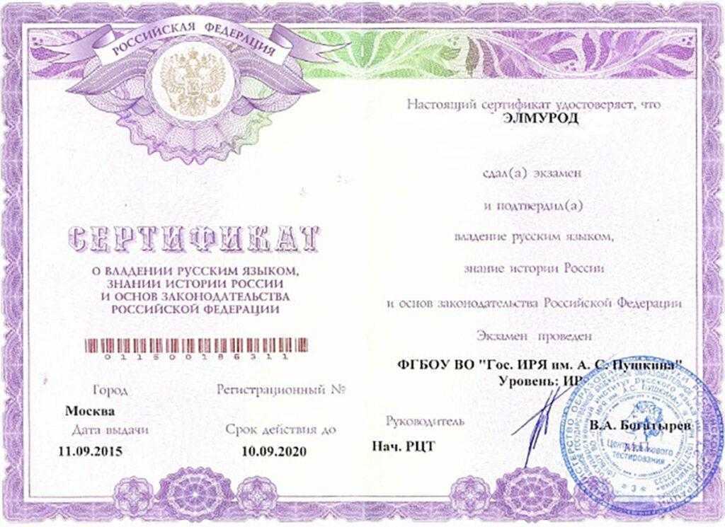 Если иностранный гражданин набрал необходимое количество правильных ответов, то ему выдается сертификат, который свидетельствует о наличии у его владельца знаний в области русского языка, законодательства и истории Российской Федерации.