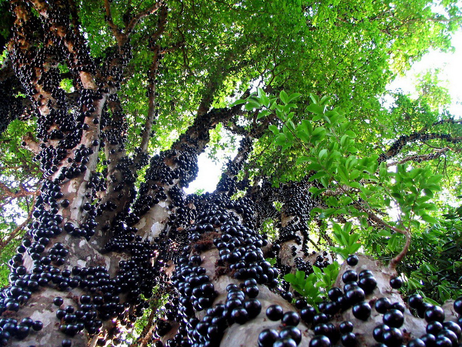 Исследователи утверждают, что джаботикаба изначально росла в южной Бразилии, но потом она мигрировала через океан и распространилась по Португалии и Филиппинам. Главная ее странность в том, что темно-фиолетовые почти черные плоды растут не на ветках, а непосредственно на стволе дерева, которое местные жители иногда называют «виноградным». Сочные «шары» со вкусом дикого винограда можно есть сразу или сделать из них сок, джем или ликер. Увы, порадовать родственников необычным сувениром из далекой страны не удастся – джаботикаба практически не хранится и начинает быстро портится уже через день после сбора.