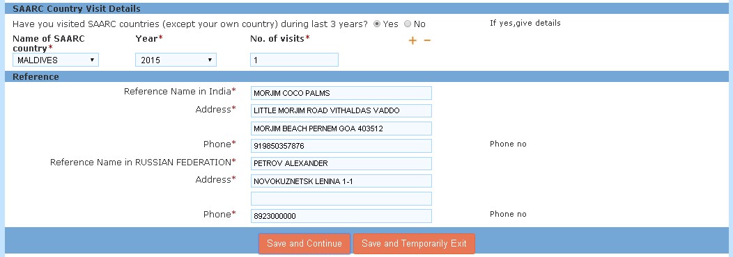 Для продолжения заполнения анкеты на визу в Индию нажмите кнопку Save and Continue – сохранить и продолжить,