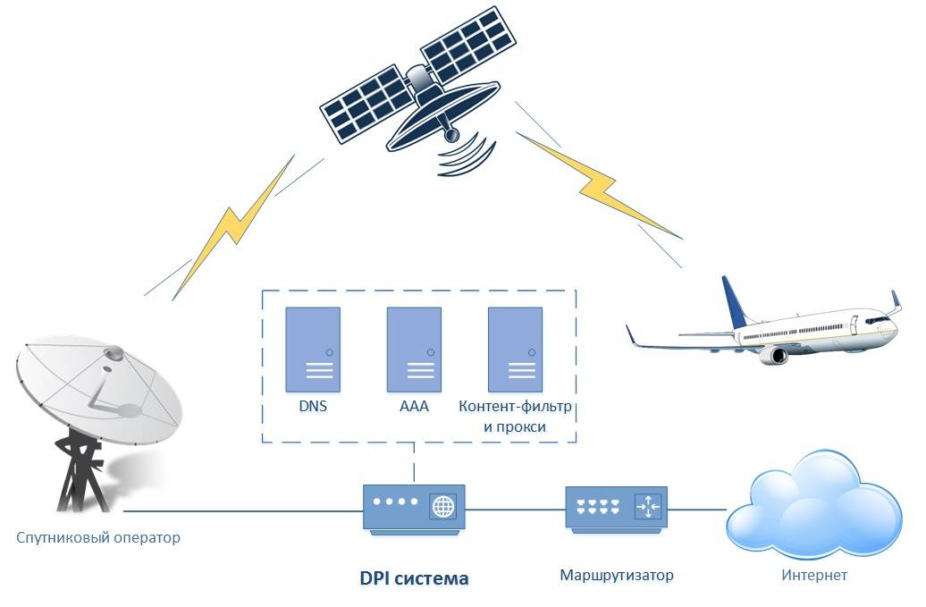 Но даже суммарная скорость в 50 Мб/с не может обеспечить приемлемую скорость для 100 пассажиров авиалайнера. Необходима специальная оптимизация канала, и для этих целей на помощь приходят системы глубокого анализа трафика DPI.