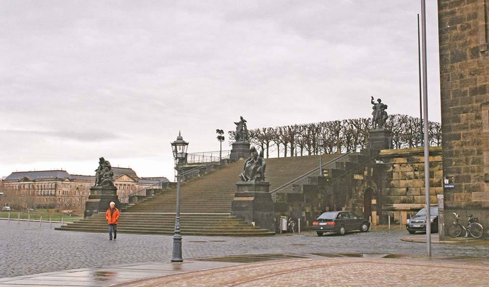Терраса Брюля, Балкон Европы — так называется набережная Эльбы между мостом Августа и мостом Карола. От моста Августа поднимитесь по лестнице мимо скульптур «Четыре времени дня» и дойдите до Альбертинума.