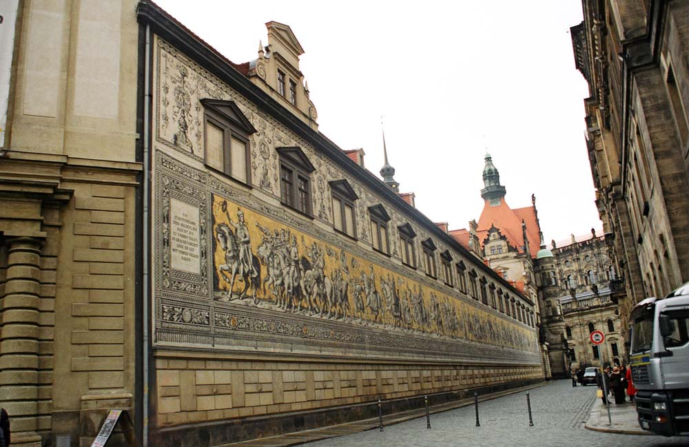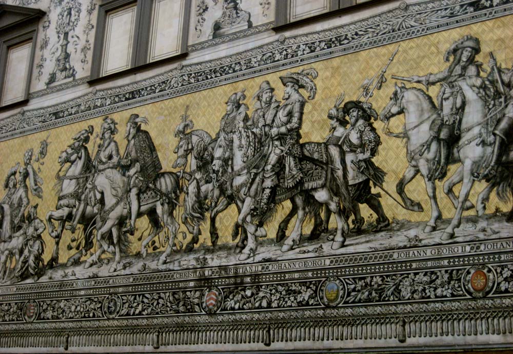 Панно «Шествие князей» изображает конную процессию правителей Саксонии. Это самое большое в мире панно, выполненное из фарфоровой плитки с ручной росписью: всего на него ушло 23 тысячи плиток!