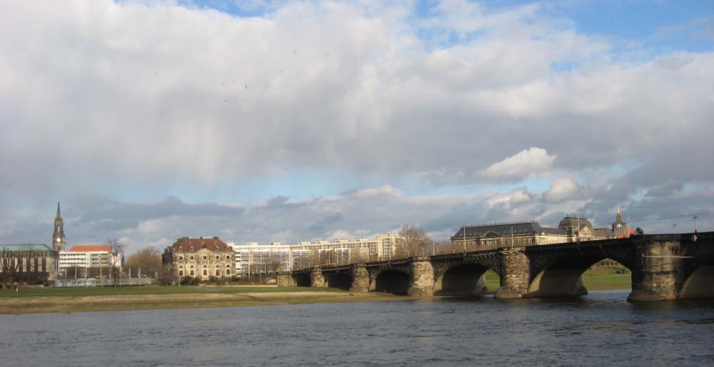 Мост Августа Сильного — 9 арок из песчаника были построены в начале XX века и соединили Старый город с районом Нойштадт. С моста (как и с противоположной стороны Эльбы открываются красивейшие виды на Старый город и Террасу Брюля.