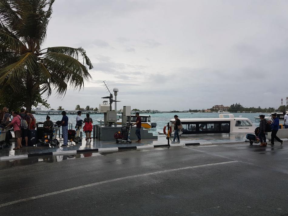 Рано утром нас покормили завтраком, и в 07:00 наша лодка уже плыла в сторону международного аэропорта Мале. За трансфер мы отдали 25 US$ с человека. Там мы сели на паром, заплатив 1 US$, и отправились в столицу коротать время до вылета.