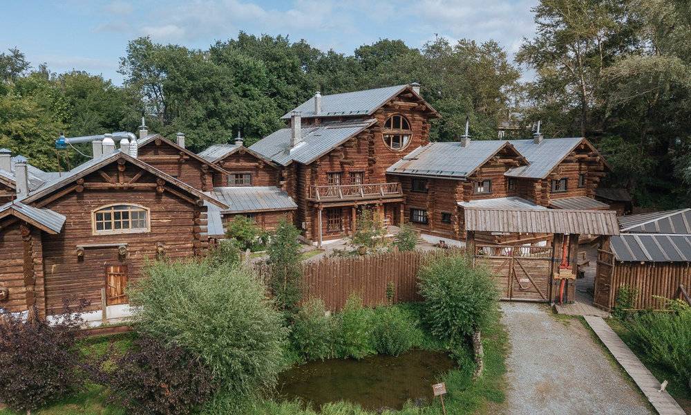 Настоящий этнокурорт в центре города, на берегу реки Иж. Тут можно показать городским детям, каково это — жить в настоящем бревенчатом доме с его скрипами и шорохами, с большой библиотекой и уютной гостиной с камином, у которого греется котик. Для детей есть игровая зона в самом отеле и классная площадка на улице.