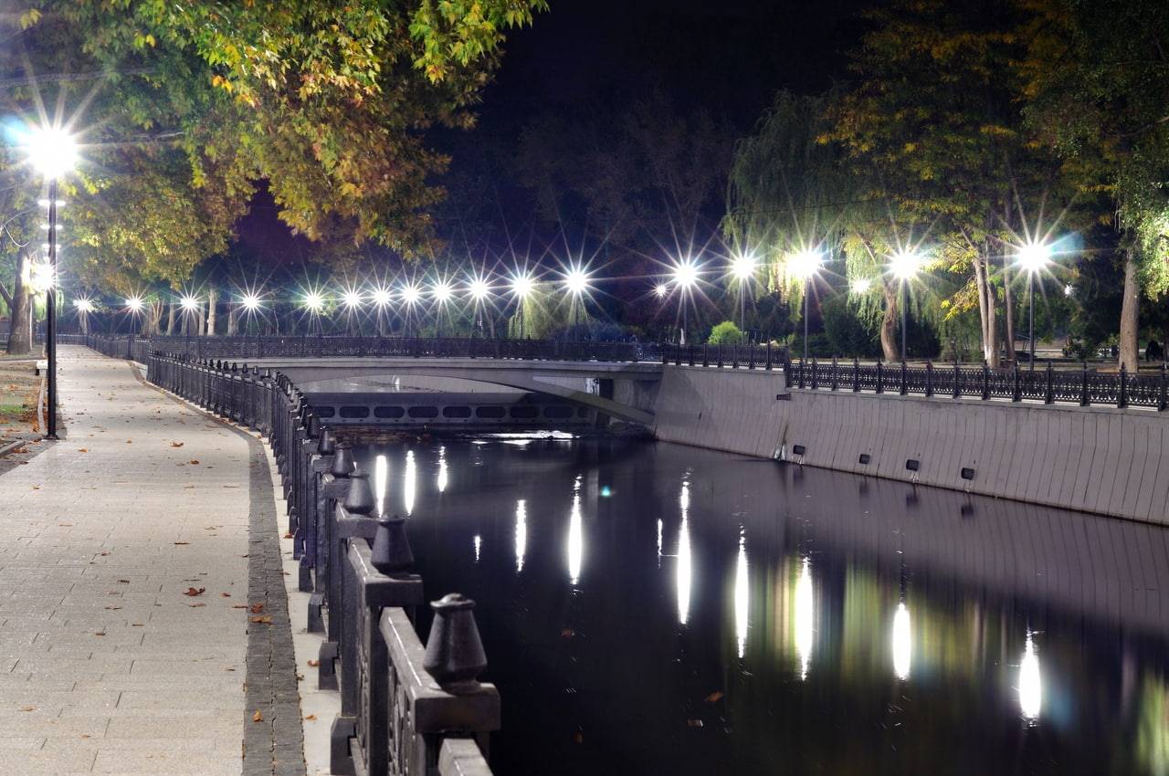 Зеленый парк на берегах рек Салгир и Малый Салгир (ул. Гагарина/ул. Киевская) – ближайшее к железнодорожному вокзалу и автостанции Симферополя прогулочное место. Сдав вещи в камеру хранения, за несколько минут можно дойти до зеленой зоны с развлечениями. На территории можно увидеть несколько памятников, на выходе есть кафе.