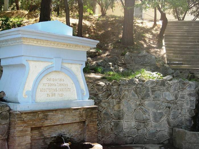 В глубине Екатерининского парка вот уже целых 150 лет существует окутанный легендами фонтан, названный в честь грека Апостола Савопуло. Согласно местному приданию, он с рождения был слепым и никто не мог помочь ему справиться с недугом. Но однажды он умылся целебной водой из бьющего здесь родника и чудом прозрел. На радостях грек отстроил на этом месте красивый фонтан.