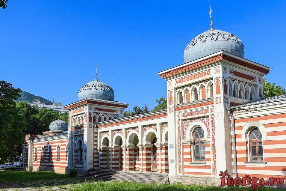 | 4 | Ванны Островского | Относятся к историческим ценностям города. Их строительство было завершено в 1893 году. Название получили по имени М.Н.Островского, брата знаменитого писателя. Здание Островских ванн выполнено в стиле восточных дворцов, украшено арабской вязью и поражает красотой и изысканностью. |