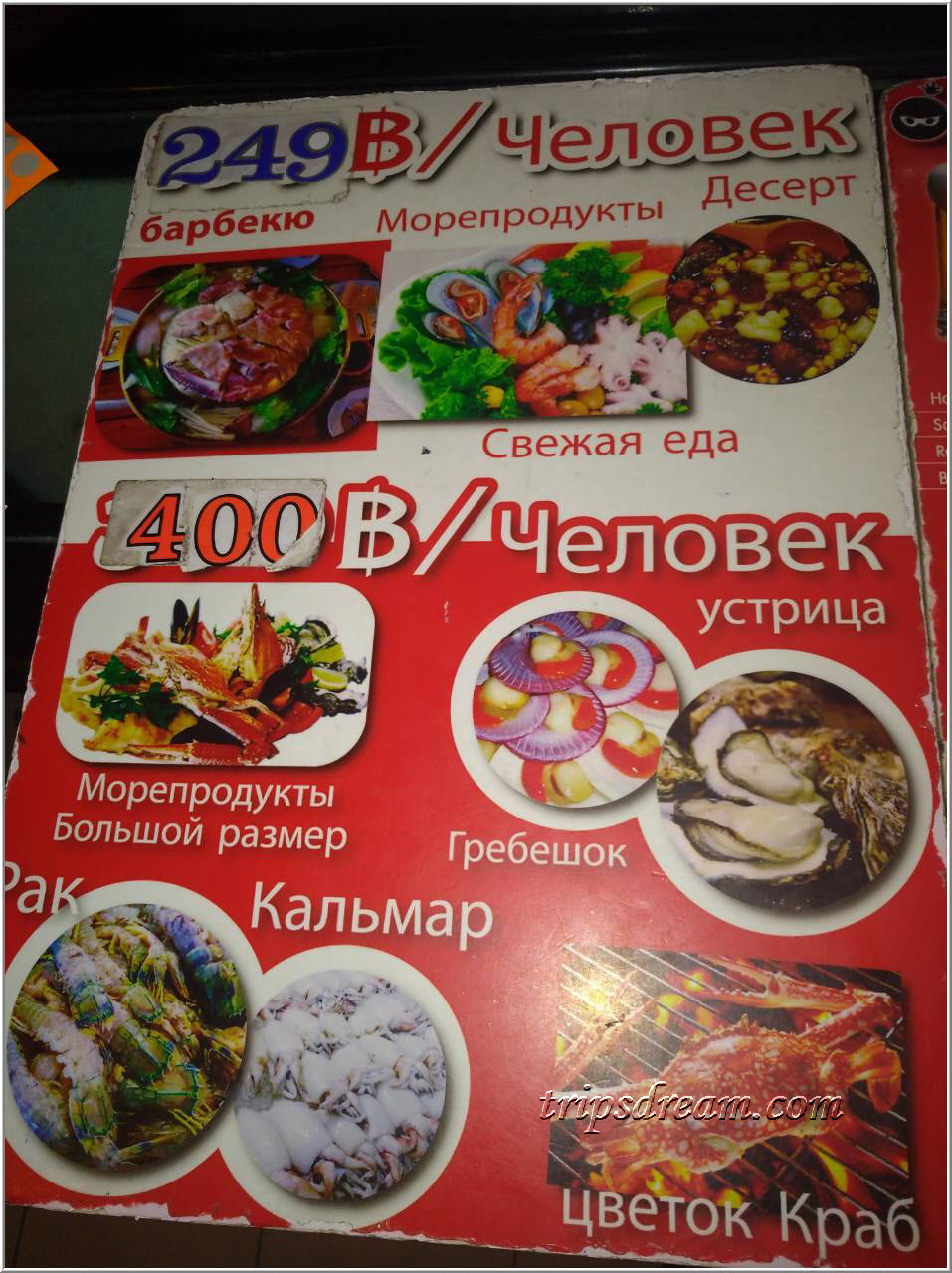 Ninja BBQ Buffet Restaurant — Третья улица. Буфет “Ниндзя” в Паттайе нравится почти всем. Продукты всегда свежие, а готовить самим интересно. К тому же он один из самых недорогих: обычный вход для взрослого стоит 199 бат, а вход с особым меню, которое включает устриц и лобстеров — 399 бат.