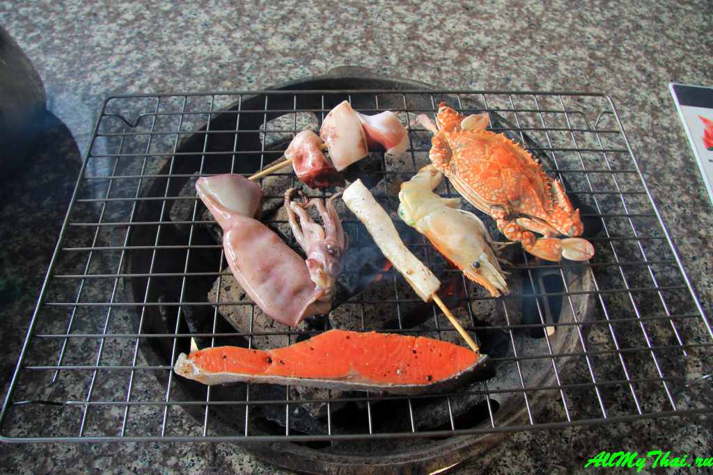 Заманчиво и аппетитно. Чтобы пожарить вот ту большую розовую рыбину, штатной кастрюльки явно не хватит, и для этого рядом с заведением есть несколько мангалов. Если вам будет лень, «гриль-служба» за 20 бат приготовит всё за вас.