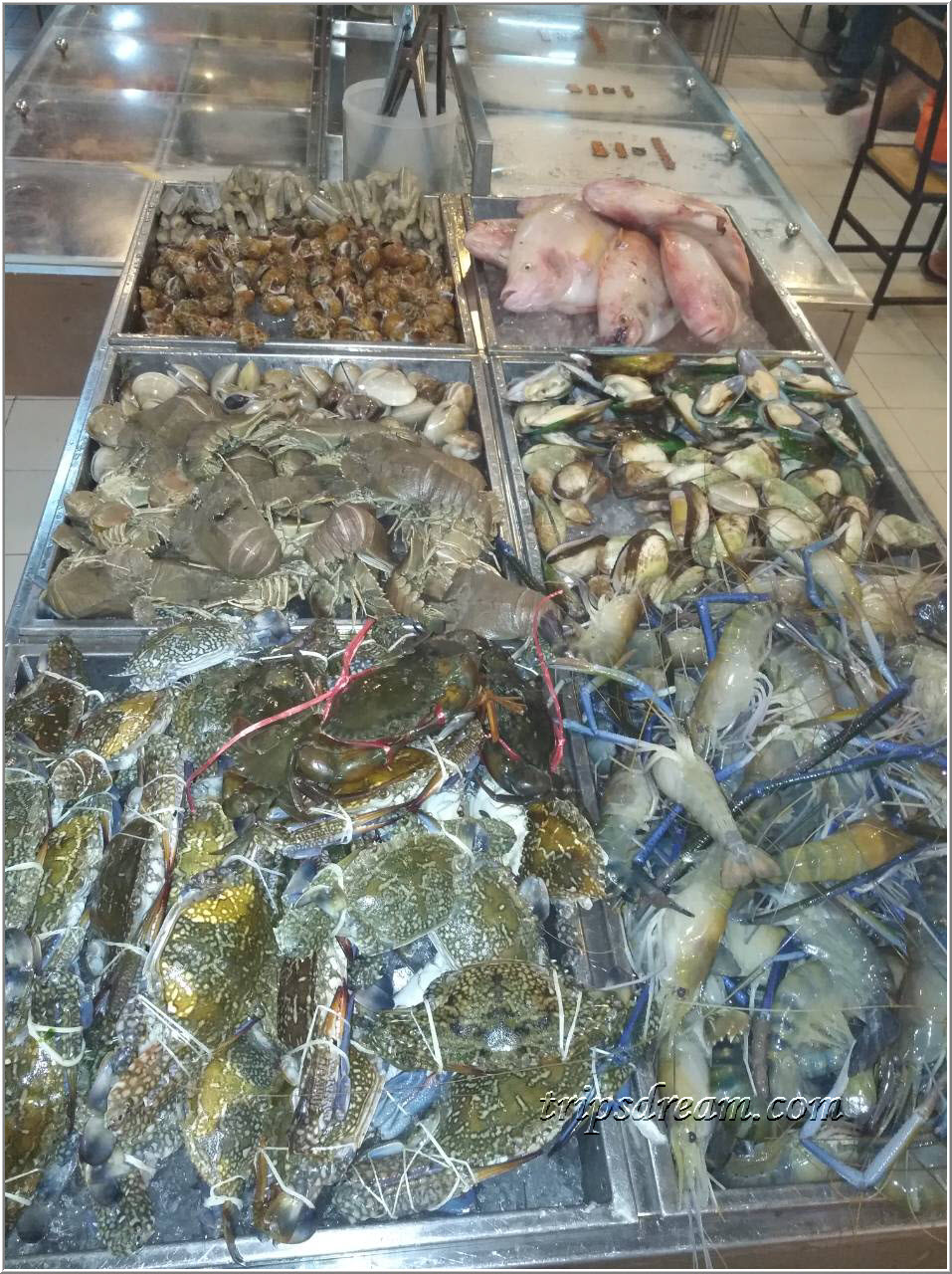 Время работы: с 16 до 00 часов, лучшее всего сюда идти в интервале с 16 до 18, пока еще народ не подтянулся на ужин и на лотках богатый выбор свежайших морепродуктов.