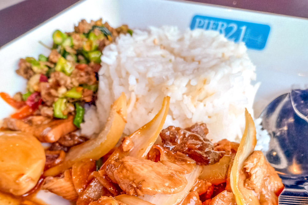 Фудкорт в Терминале 21 называется Pier 21. Он находится на 4 этаже (Сан-Франциско). Выбор в фудкорте огромный. Есть стойки с вегетарианскими опциями, есть халяльная еда, есть исанские хиты и все самые популярные блюда тайской кухни.